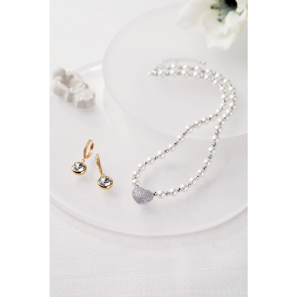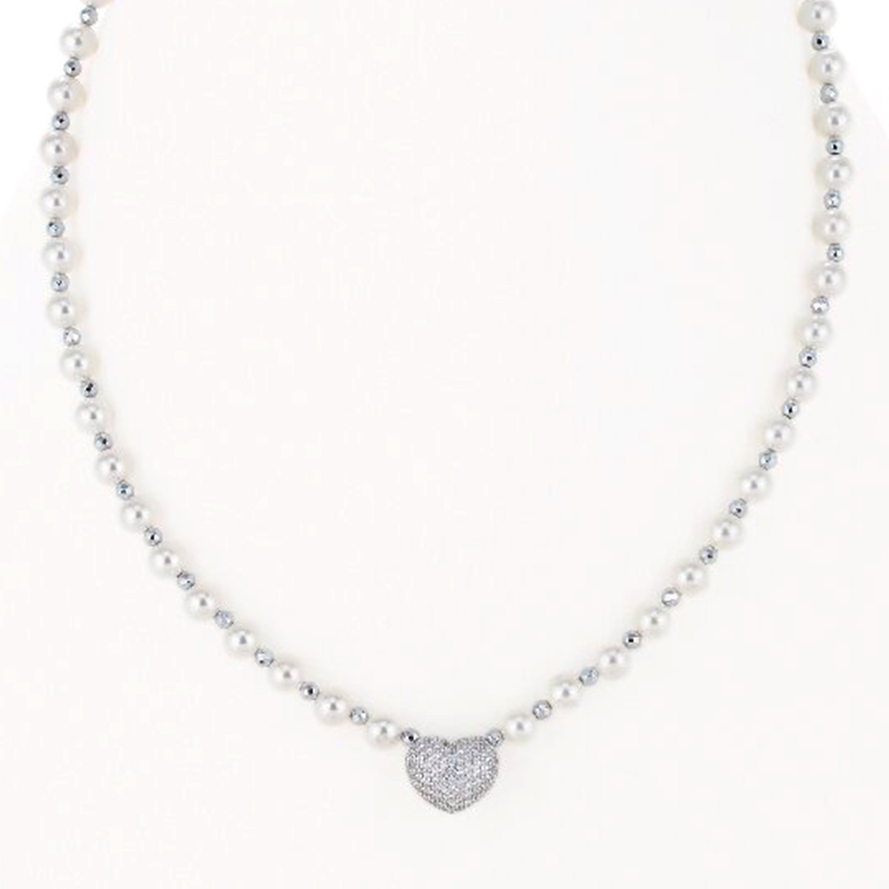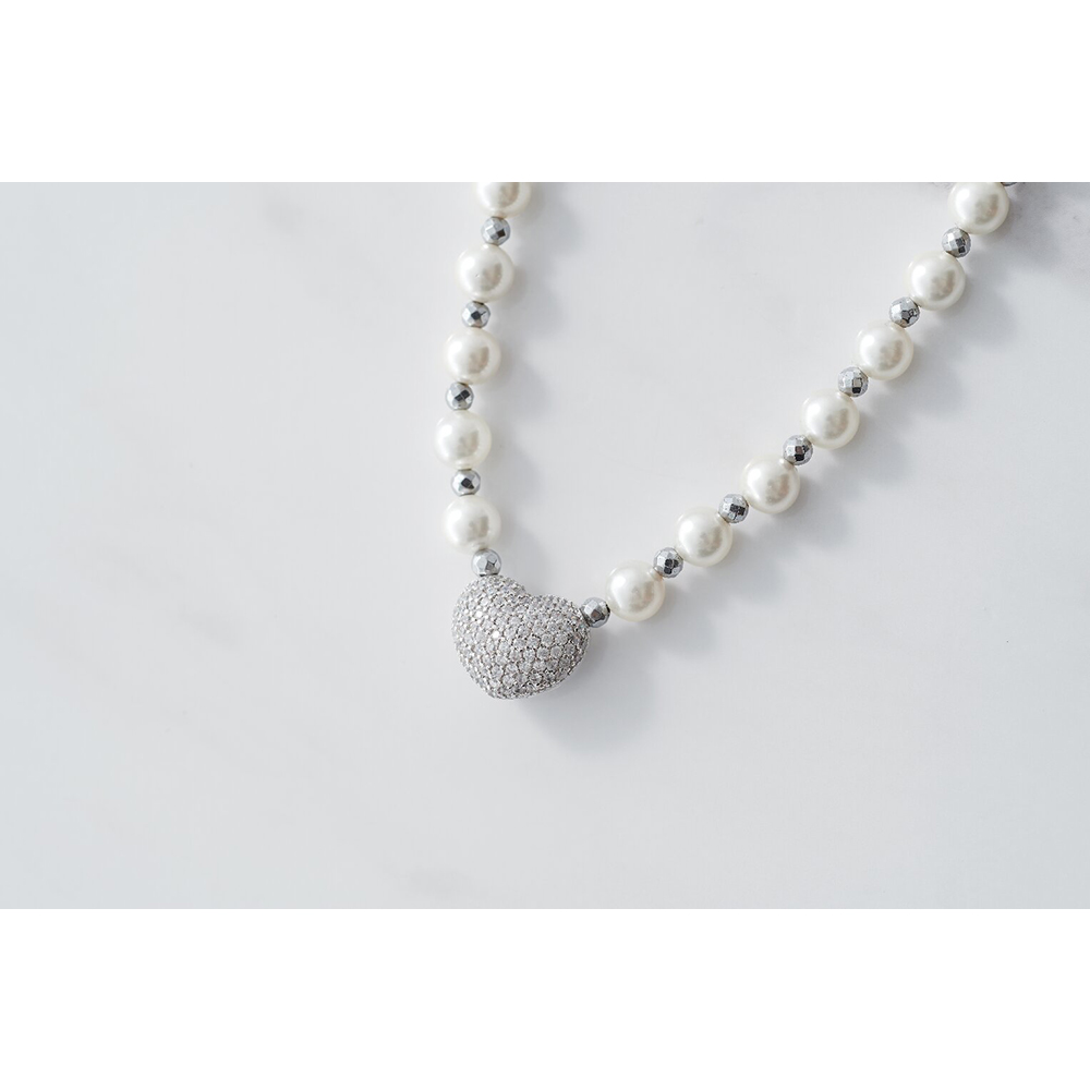 貝パールにハートのヘッドを組み合わせた華やかなネックレス。