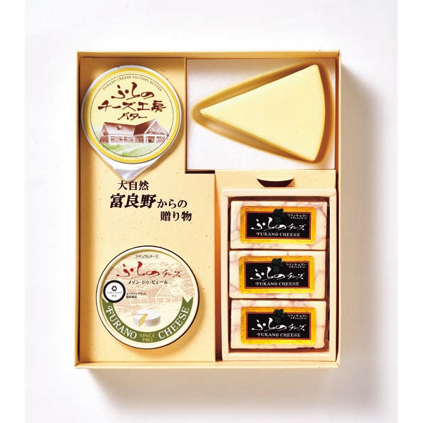 内容:ワインチェダー40g×3、ふらのチーズホワイト125g、メゾン・ドゥ・ピエール100g、ふらのチーズ工房バター70g