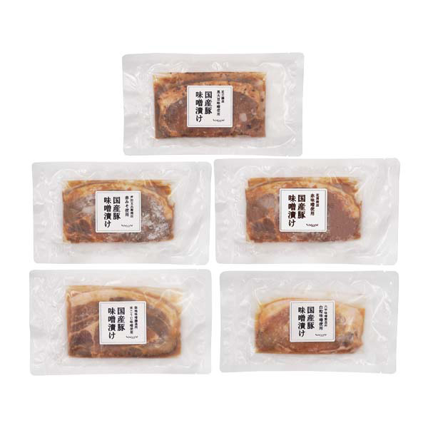 内容:芦田文兵衛商店の赤味噌漬け・六甲味噌製造所の白粒味噌漬け・保地味噌醸造所の米こうじ味噌漬け・足立醸造の黒大豆味噌漬け・花房商店の赤味噌漬け 各70g
