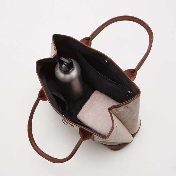 タテ、ヨコ色違いの糸を平織りで織り上げた、キャンパス地「エルガリー」の手提げバッグです。