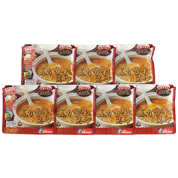 気仙沼産のふかひれを使用した「ふかひれスープ」です。電子レンジで袋のまま温められるので、手軽にお召し上がりいただけます。