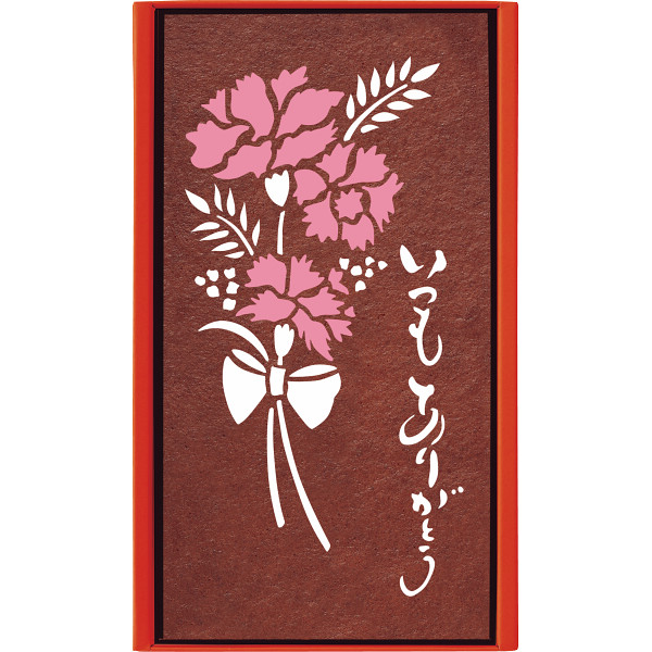 お母さんへの感謝の気持ちを刷り込んだ長﨑堂の母の日カステーラと、届いたらそのままで飾れる花瓶要らずのスタンディングブーケのセット。