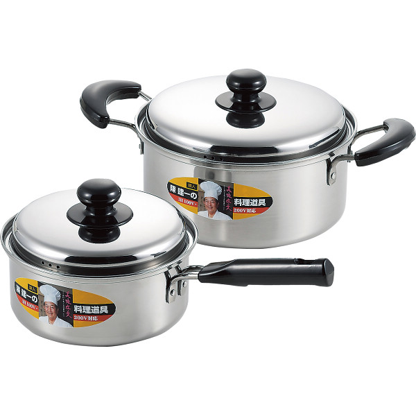 ■鉄人陳建一のステンレス鍋のセットです。ステンレス製でお手入れ簡単。レトルト食品の温めや煮物などに重宝します。