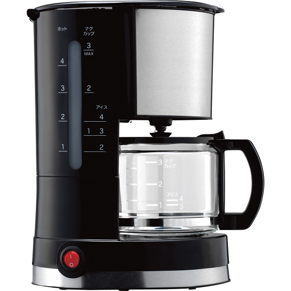 コンパクトでスタイリッシュなデザインでキッチンやリビングどこでもコーヒーを楽しめるコーヒーメーカー。ホットコーヒーは最大4杯まで、マグカップは3杯、アイスコーヒーは4杯までできます。挽いたお気に入りのコーヒー粉さえあれば、おうちで手軽に本格コーヒーが楽しめます。メッシュフィルターでコーヒーのおいしさ(油分)まで抽出、洗って繰り返し使えるので経済的です。