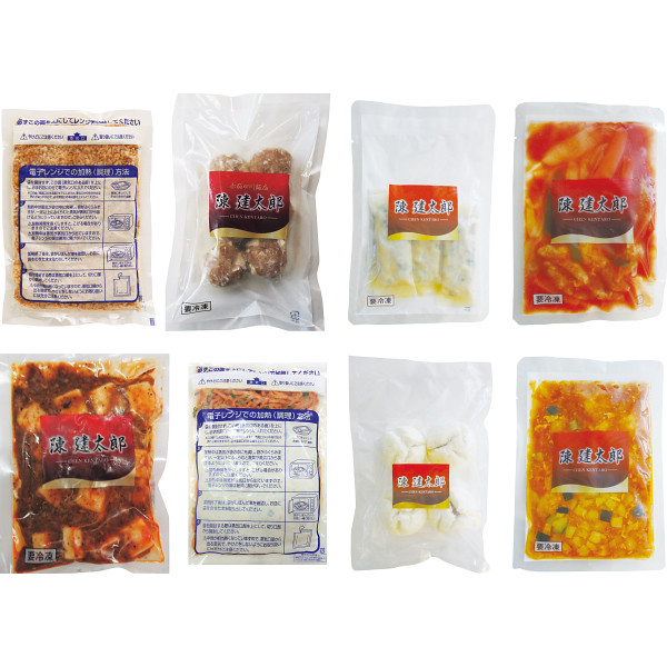 内容:手巻き棒餃子(4個入)120g、陳麻婆豆腐5年熟成使用150g、おかずエビチリ150g、フルーティー酢豚150g、四川炒麺200g、回鍋肉炒飯250g、四川飯店肉焼売6個入240g、チャーシューまん(4個入)200g