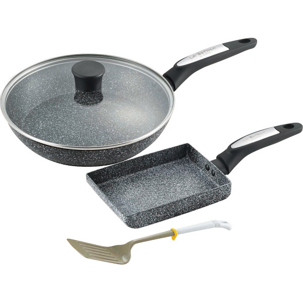 内容:フライパン26cm=深さ約4.8cm、玉子焼き=深さ約2.8cm、焼き面サイズ約13×18cmガスコンロ可、100・200V電磁調理器対応