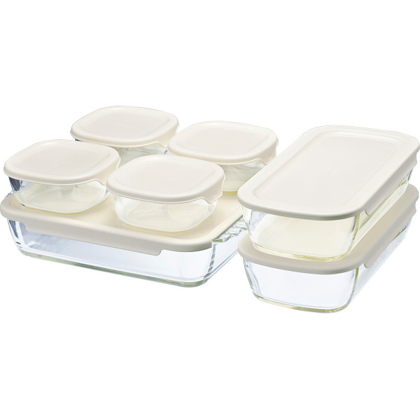 調理、食器、保存としても使える便利な耐熱ガラス製容器、お買い得7個セット。電子レンジにも対応している為、フタをしたままレンジ調理や温め直しが可能です。フタを外して、ガラス本体はオーブン調理も対応します。シンプルなデザインなので、食卓に食器としてそのまま並べられます。中身が見えるので、保存の際も何を入れたか一目瞭然。角型の保存容器は冷蔵庫収納にも便利で、スペースにも困りません。耐熱ガラスはにおい移りや色移りがしにくいので衛生的な安心素材です。