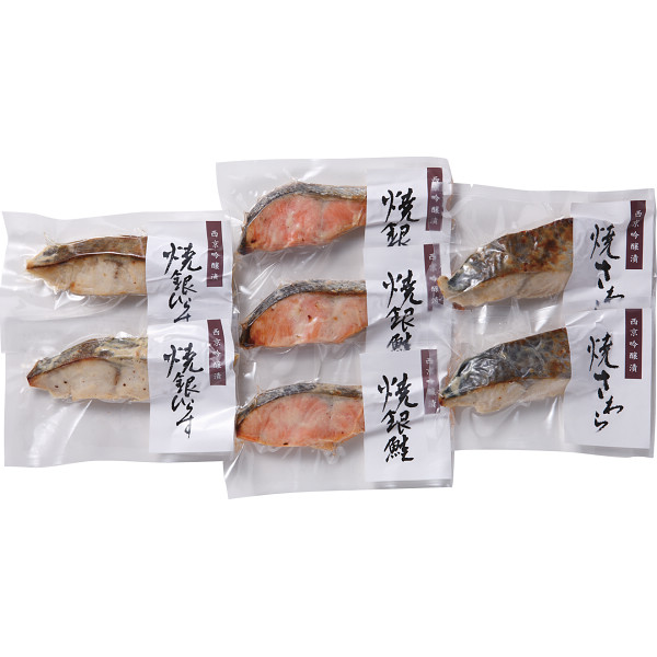 内容:焼銀鮭吟醸漬70g×3、焼銀ひらす吟醸漬70g×2、焼さわら吟醸漬70g×2