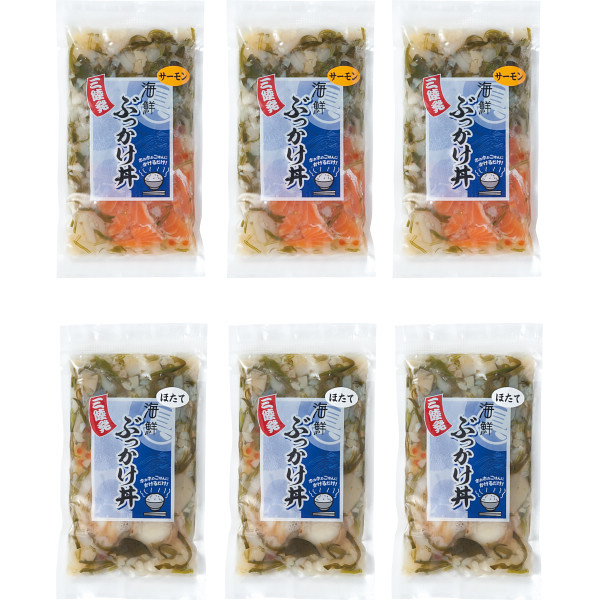 内容:海鮮ぶっかけ丼の素(ほたて・サーモン各100g×各3)