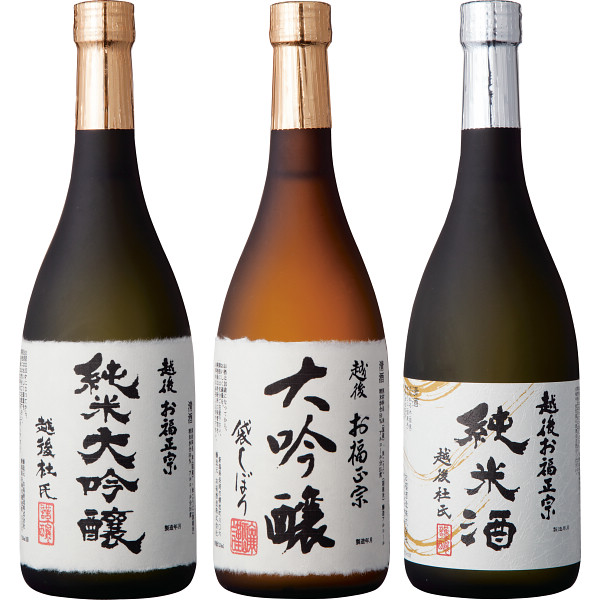 内容:お福正宗(純米大吟醸、+5)・(純米酒、+5)・袋しぼり(大吟醸、+5)各720ml