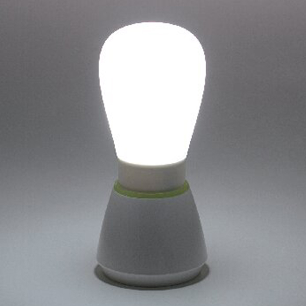 電源/単3乾電池×各3(別売)。スタンドに立たせてライト部分を押すと、簡単に2段階点灯。スタンドから外せばライトのみで懐中電灯として使用できます。