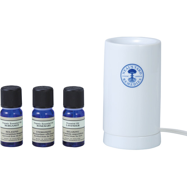 ■ナイトライトとしてもお使い頂けるコード式のアロマライトと、ベルガモット、ラベンダー、ローズマリーを組み合わせたセット。その日の気分で自分でオリジナルのブレンドをお楽しみいただけます。