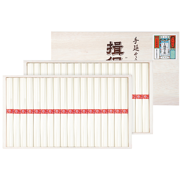 兵庫県を代表する特産品「揖保乃糸」。伝統的な製法で丁寧に熟成と延ばしをくり返して作られました。なめらかでコシのある食感をお楽しみいただけます。