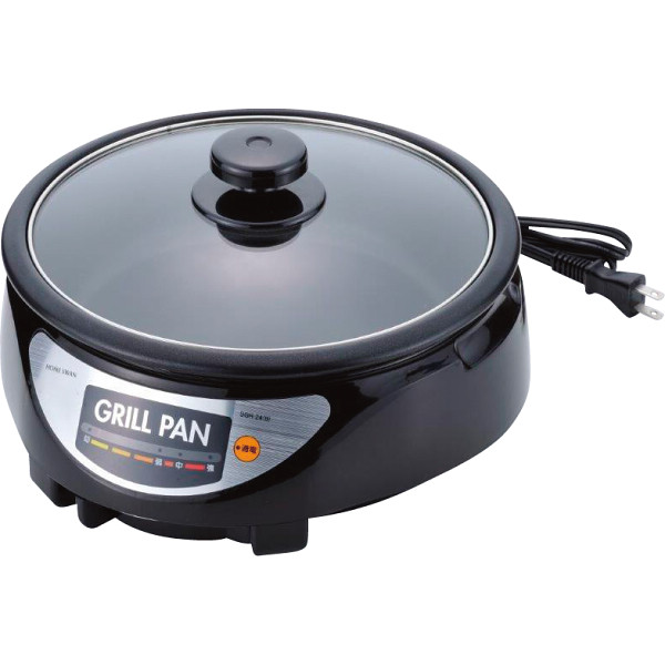 手ごろな大きさの深型グリルパンです。深型なので煮込み料理もぴったり。内面はフッ素樹脂加工なのでこびり付きにくく、汚れも落としやすい。中身が見えるガラス蓋付きで便利です。