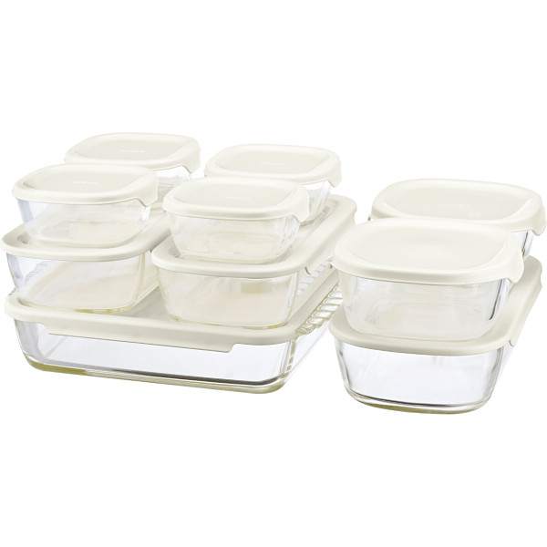 内容:正方形小(約11.1×10.7×4.7cm・250ml)×4、正方形中(約14.3×13.9×6.2cm・600ml)・長方形小(約23.8×12.5×5.6cm・900ml)×各2、正方形大(約27×24.4×5.7cm・2l)・長方形中(約27×14.5×6.2cm・1.4l)×各1