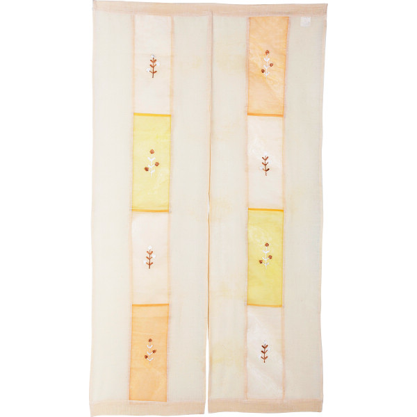 インド綿とオーガンジーパッチワークにパイル刺繍をしたナチュラル感のあるのれんです。
