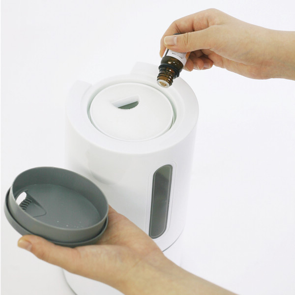 ■大容量2.5リットルタンクにお好きな香りを楽しめるアロマトレーとお水に潤いを与えるミネラルカートリッジを標準装備した超音波式加湿器です
