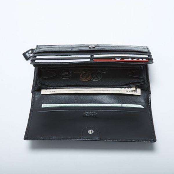型押しの長財布なので高級感があり、小銭入れが2室にわかれているので便利です。
