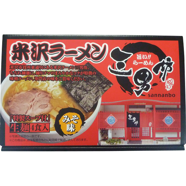 ■米沢市役所東通りにある米沢ラーメン三男坊。ちぢれ細麺に練りゴマのまろやかなコクが特徴の味噌ラーメンをご賞味ください。