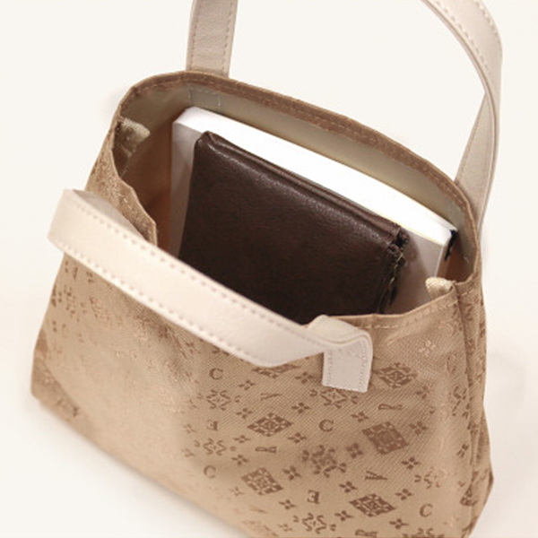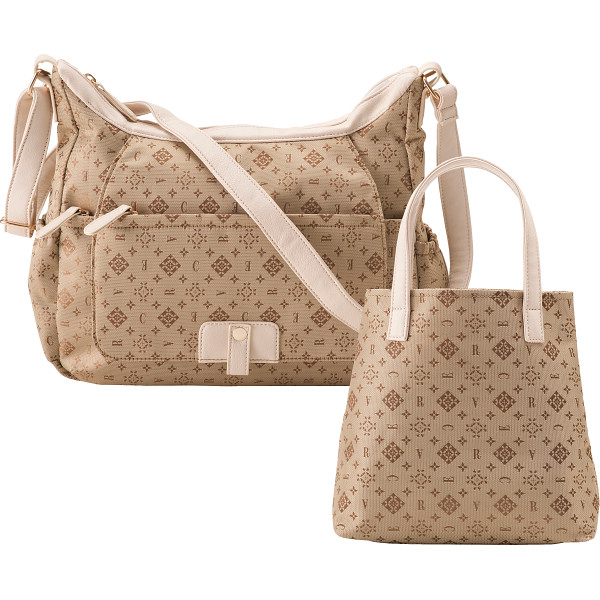モノグラム生地を使ったショルダーバッグとミニトートのセット。ミニトートは、オープン式で出し入れスムーズ。スリムタイプで必需品がコンパクトにまとまります。ショルダーバッグは、ポケットがたっぷりあり小物が整理しやすい機能的なデザインです。