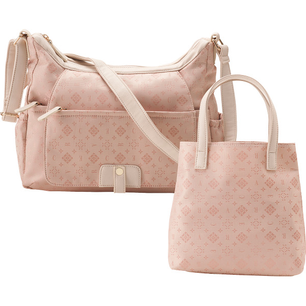 モノグラム生地を使ったショルダーバッグとミニトートのセット。ミニトートは、オープン式で出し入れスムーズ。スリムタイプで必需品がコンパクトにまとまります。ショルダーバッグは、ポケットがたっぷりあり小物が整理しやすい機能的なデザインです。