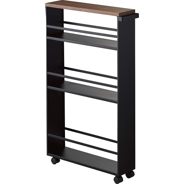 幅約13cmの隙間で使えるハンドル付きのスリムワゴン!キッチン小物、ジャムや雑貨など小さいものからペットボトルや瓶類などの大きいものまで収納可能。ハンドル付きだからラクラク移動!