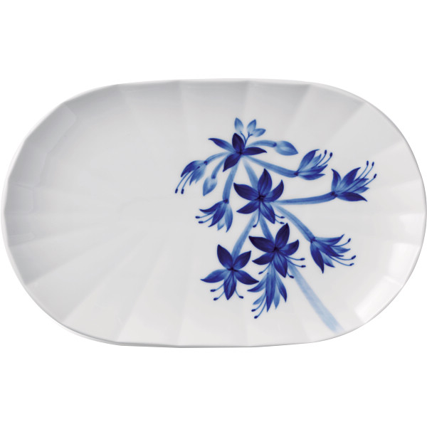 デンマーク語で花といういみのブロムスト。手描きされたホスタ(ギボウシ)の花を見ると、オーバルディッシュの控えめなディテールに一気に花が開く姿から花火が思いうかびます。このオーバルディッシュは、前菜やフルーツを盛り付けるなど、幅広くお使いいただけます。