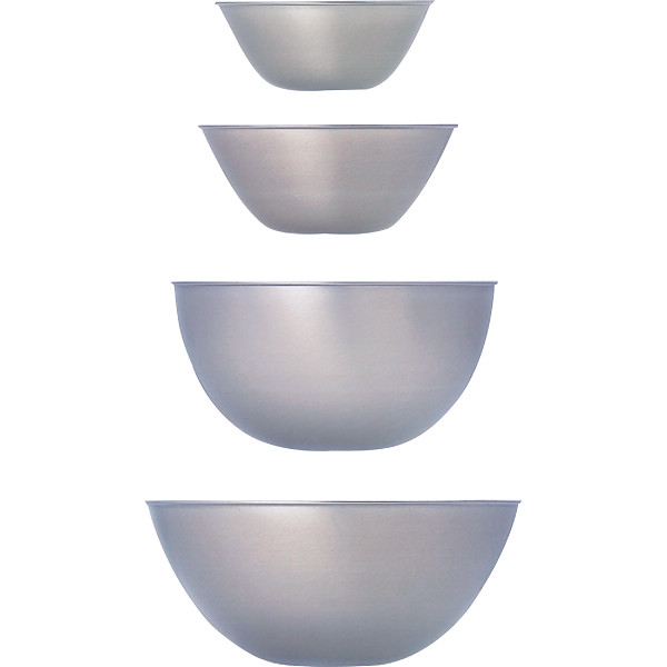 内容:ボウル16cm(約16φ×6.5cm・700ml)・19cm(約19φ×7.7cm・1.2l)・23cm(約23φ×12cm・3.4l)・27cm(約27φ×11.7cm・4.2l)×各1