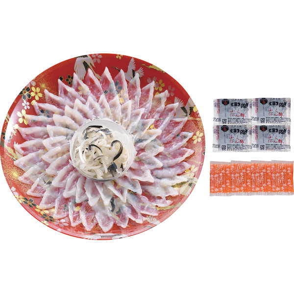 内容:とらふぐ刺身100g、とらふぐ皮30g、ふくポン酢10g×4、もみじおろし10g×4
