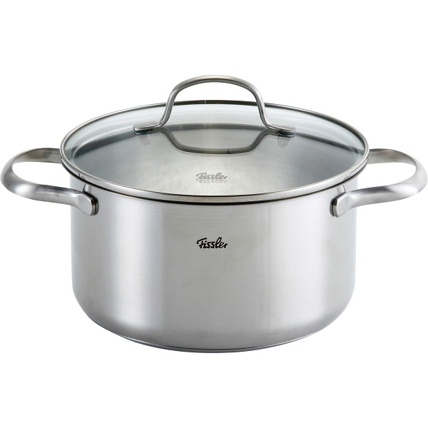 サテン仕上げのサンフランシスコシチューポットは傷が目立ちにくく、美しさが長持ちします。どこから注いでも液だれしないフチ設計、便利な目盛り、無水調理も可能なガラスフタなどフィスラーならでわの高機能を備えています。