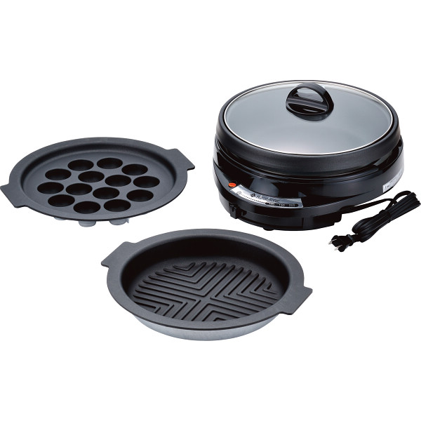 これ1台で鍋物はもちろん、たこ焼きや焼肉も楽しめる、グリルパン3点セットです。プレートは丸洗い可能です。