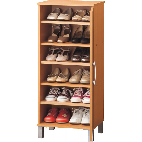 靴は最大12足収納できます。固定棚2枚・可動棚3枚付なので、靴の高さに合わせて棚の位置を変えることができます。背面は化粧仕上げ。脚を外せば2台積み重ねることができるので、収納力がアップします。また、キッチンやリビングでの収納棚に使用しても便利です。