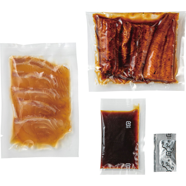 内容:うなぎ蒲焼(うなぎ:国産使用)60g・たれ20ml・山椒0.2g・鯛漬け60g×各4