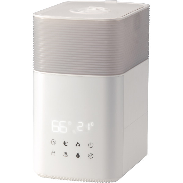 UVランプ搭載のハイブリッド式加湿器。水を加熱するので衛生的な加熱式と、細かいスチームを素早く放出する超音波式の良いところを兼ね備えたハイブリッドタイプ。上部給水が可能!タンクを運ばず楽々給水出来て便利です。さらに給水口を大きく設計しているので、水を注ぎやすく、お手入れしやすいのも嬉しいポイント。