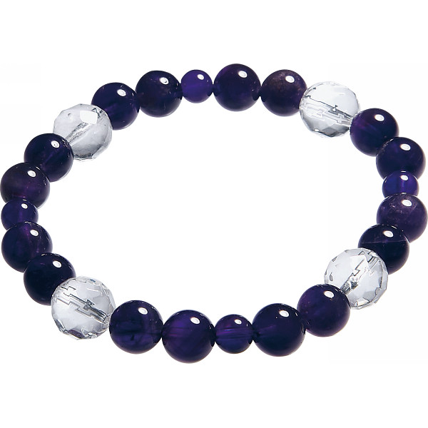 内容:●天然石(アメジスト)(約8mm珠・約6mm珠)、カット水晶(約10mm珠)、伸縮ゴム●現品(全長)約19cm