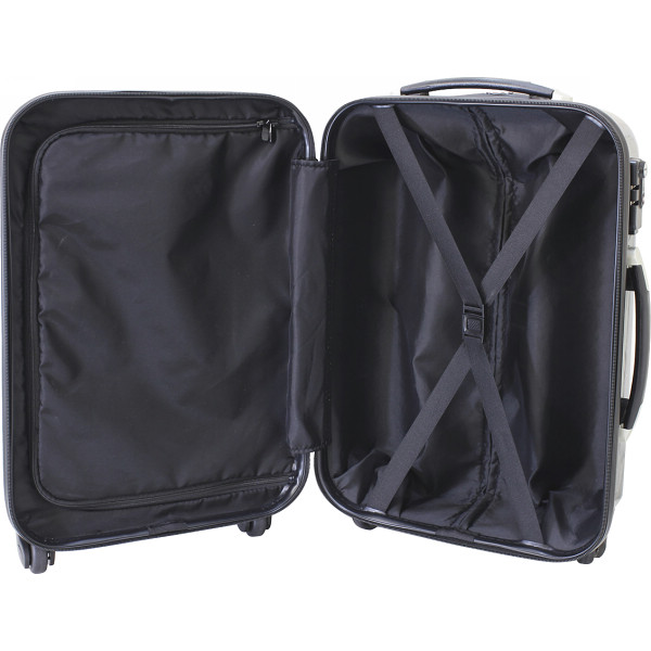内容:内側=ファスナー仕切り×1、固定ゴムバンド×14輪キャスター、ハンドル3段調節、TSAロック付、機内持込否開閉=ファスナー式