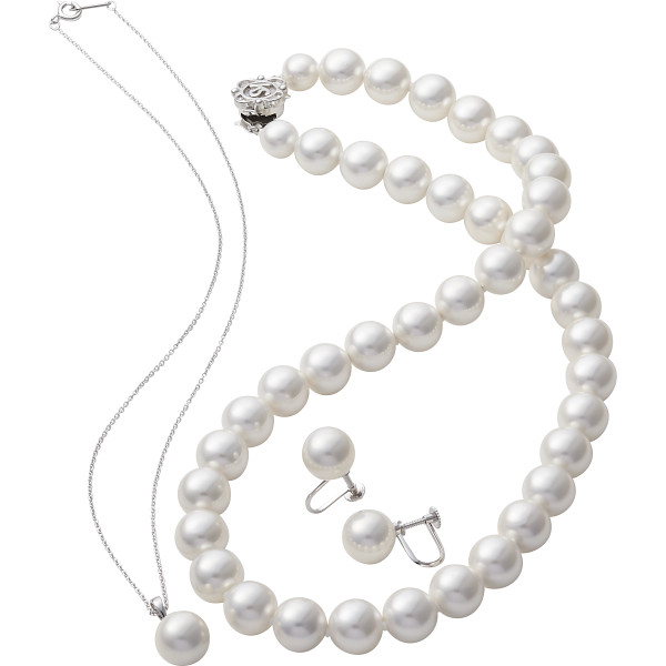 カンサイセレクション 花珠貝パール3点セット ホワイト