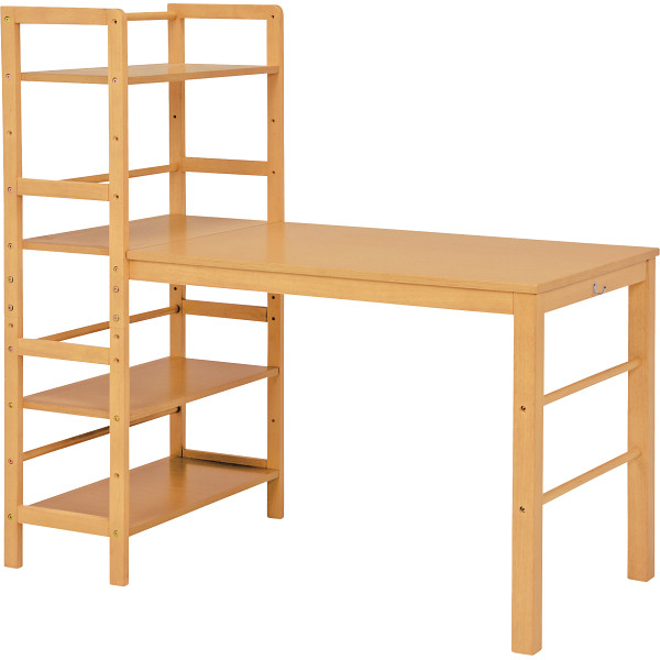 天然木を使用したデスク。ラックは可動棚なので書類に合わせて高さを変えられます。