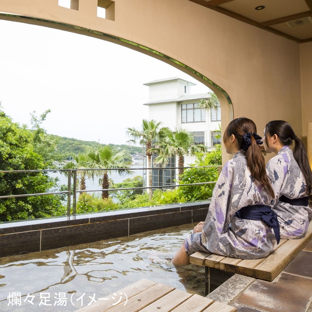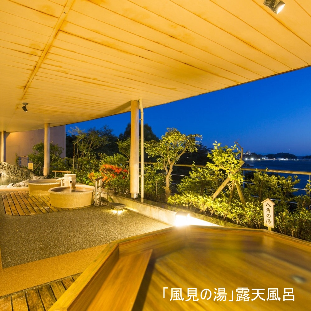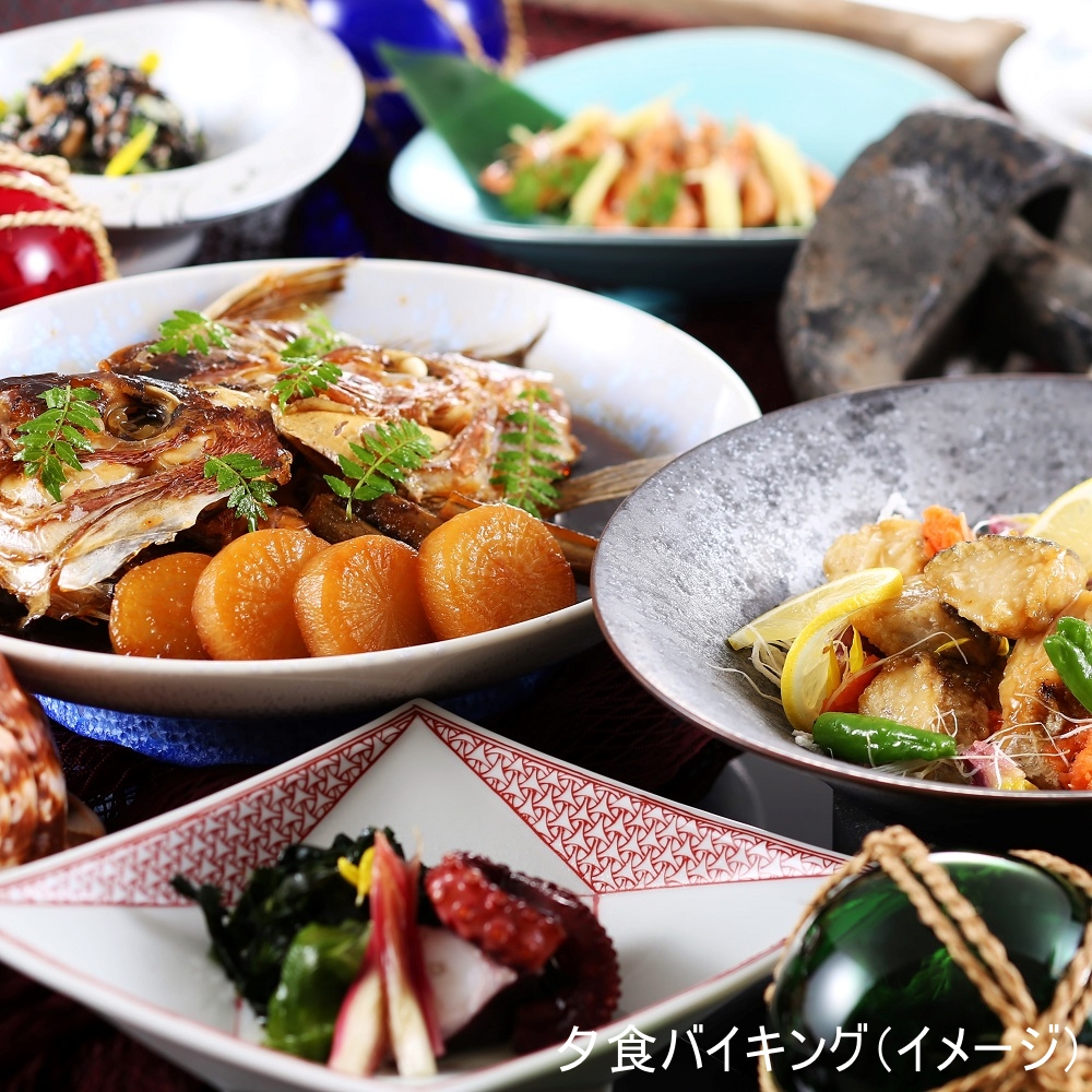 3種類の露天風呂を備えた大浴場「風見の湯」をはじめ、趣の異なる3か所の大浴場で湯巡りを。ご夕食は、海の幸を中心とした約50種のバイキングをご用意。ご当地料理を楽しめるコーナーもお楽しみください。