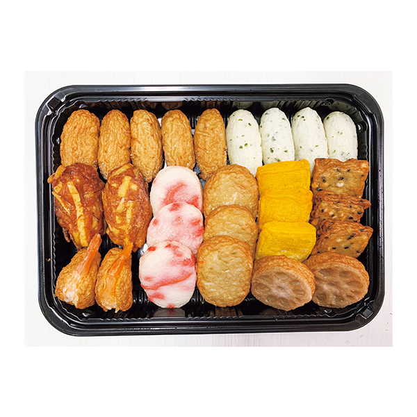 魚肉をブレンドし旨みを引き出し、ソフトな食感には豆腐と山芋、風味豊かな甘みに欠かせない灰持酒を使用。小田口屋独自の製造法です。又、練り物に相性の良い色鮮やかな種ものを用い、バラエティ豊かに仕上げました。ガス充填包装することにより揚げたての風味を損なわずお届けいたします。