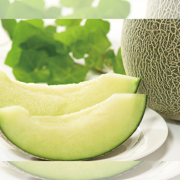 黒い皮が特長の「黒小玉すいか」は、シャリシャリとした食感と大玉にも負けないおいしさで、冷蔵庫にそのまま入れられるサイズが人気です。とても甘くジューシーなネット系青肉メロン「肥後グリーン」とセットでお届けします。熊本が誇る2つの夏味をお楽しみください。