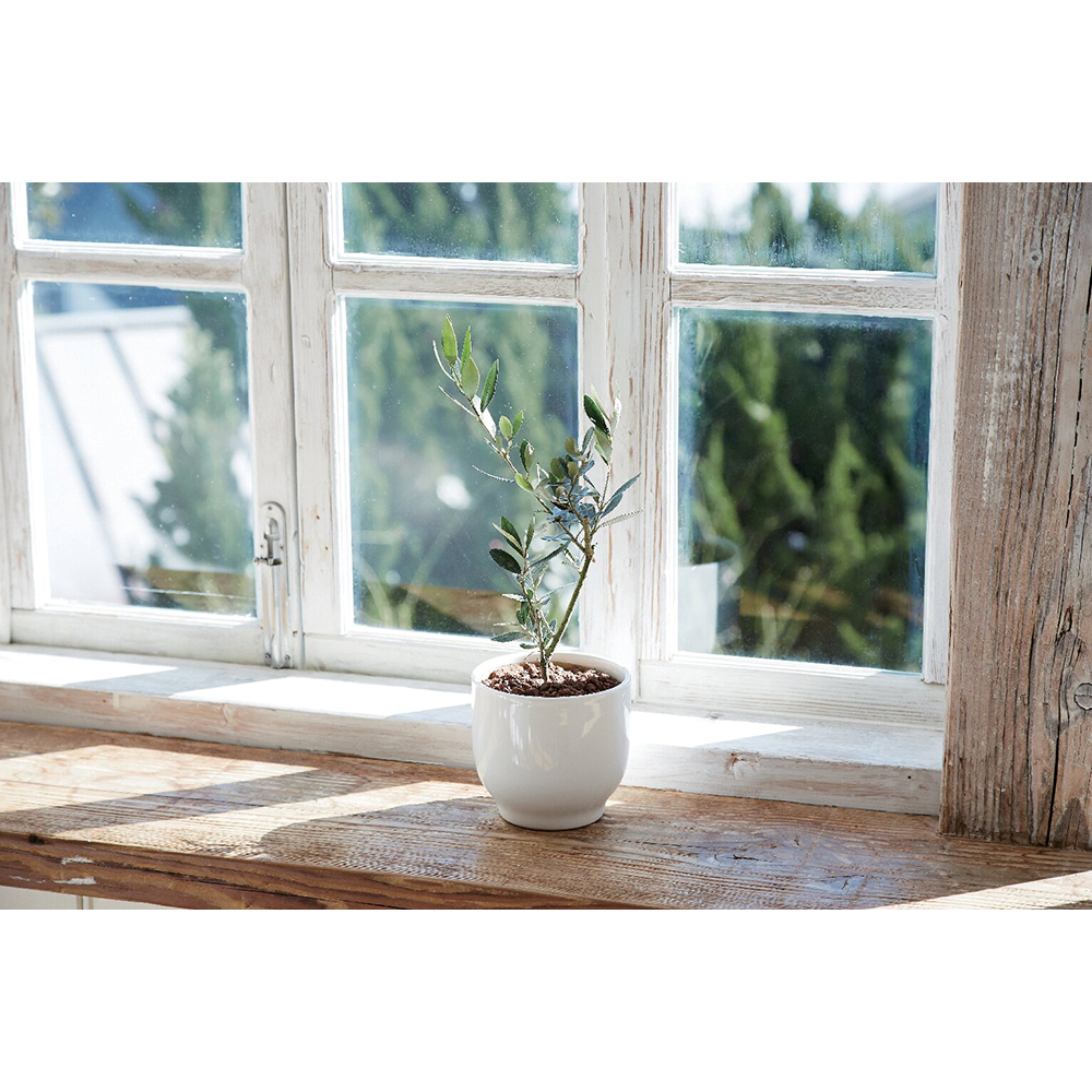 オリーブの形状は一つひとつ異なります。鉢のデザインが変わる場合がございます。受け皿は付きません。