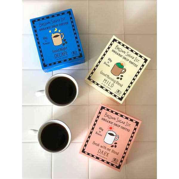 オーガニックのコーヒー豆を贅沢に使用し、朝向けにすっきりとした口当たりのマイルド、お昼向けに深いコクのあるダーク、夜のお休み前にはデカフェ、と3種類の味をご用意しました。