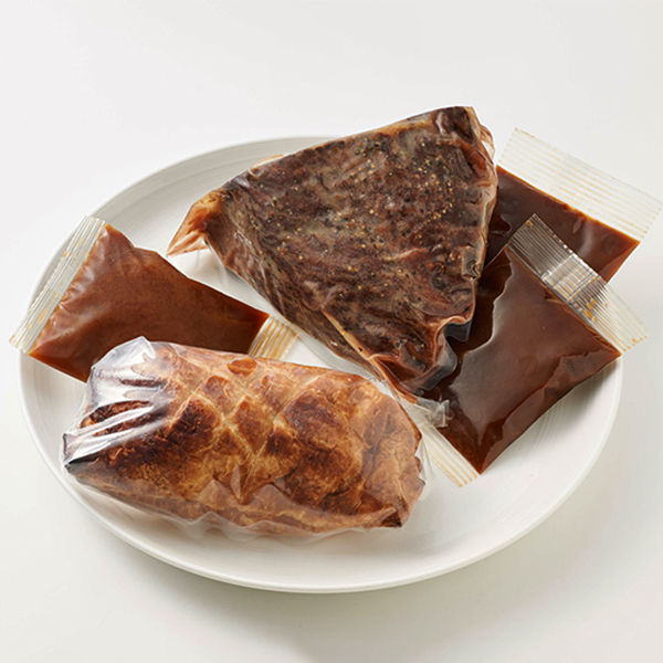 内容:黒毛和牛ローストビーフ300g、ローストビーフソース50g×2、黒毛和牛ビーフパイ150g、マデラソース50g