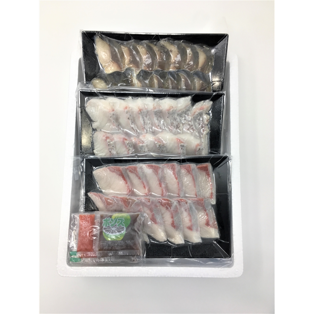 内容:真鯛たたき120g、かんぱちたたき120g、しめ鯖たたき120g、ポン酢15g×3袋、もみじおろし3g×3袋