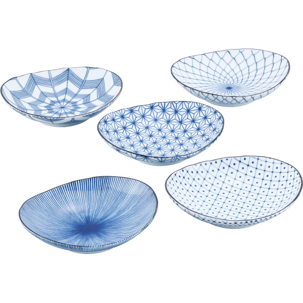 粋な染付の和紋様の取皿5柄セット。