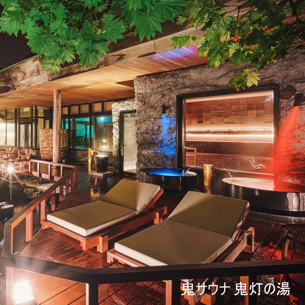 四季の移ろいが感じられる露天風呂。滝の音に耳を澄ましながらお湯に浸かれば、日々の喧騒から解き放たれるでしょう。お部屋は足を踏み入れると、ほっと和める落ち着きを持つ上質な空間が広がります。