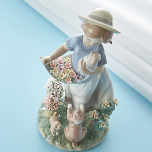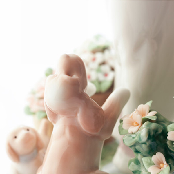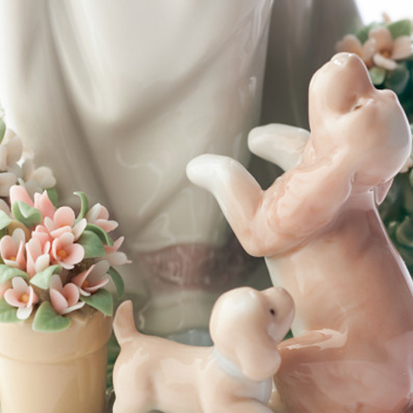 生れたばかりの子犬を抱いている女の子。僕とも一緒にあそぼうよとおねだりしています。