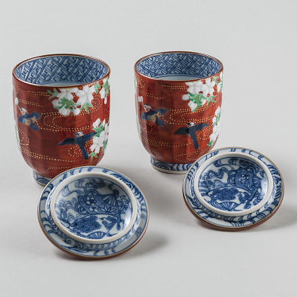 ■咲き誇る桜の下、おしどりが対でゆったりと水面に浮かんでいます。豪華でめでたい京焼ならではの上質な湯呑です。