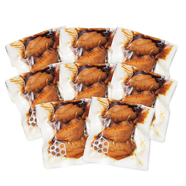国産若鶏の手羽先を大きな釜でじっくり煮込みました。甘辛い醤油の味付けが手羽先の中まで染み込み、とってもやわらか。少し濃いめの味付けで、ご飯のおかずにピッタリです。